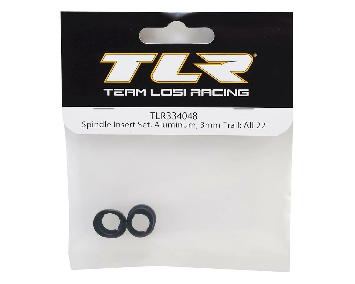 This is a pack of optional Team Losi Racing 3mm Trail Aluminum Spindle Inserts. These inserts are made from aluminum material and are much stronger, and more rigid over the standard plastic parts.Â