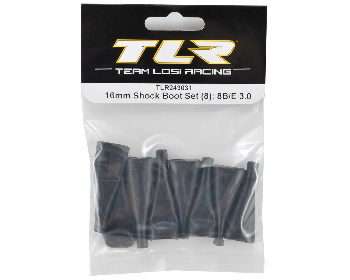 This is an optional Team Losi Racing 8IGHT 3.0 16mm Shock Boot Set. Package includes four front shock boots and four rear shock boots.