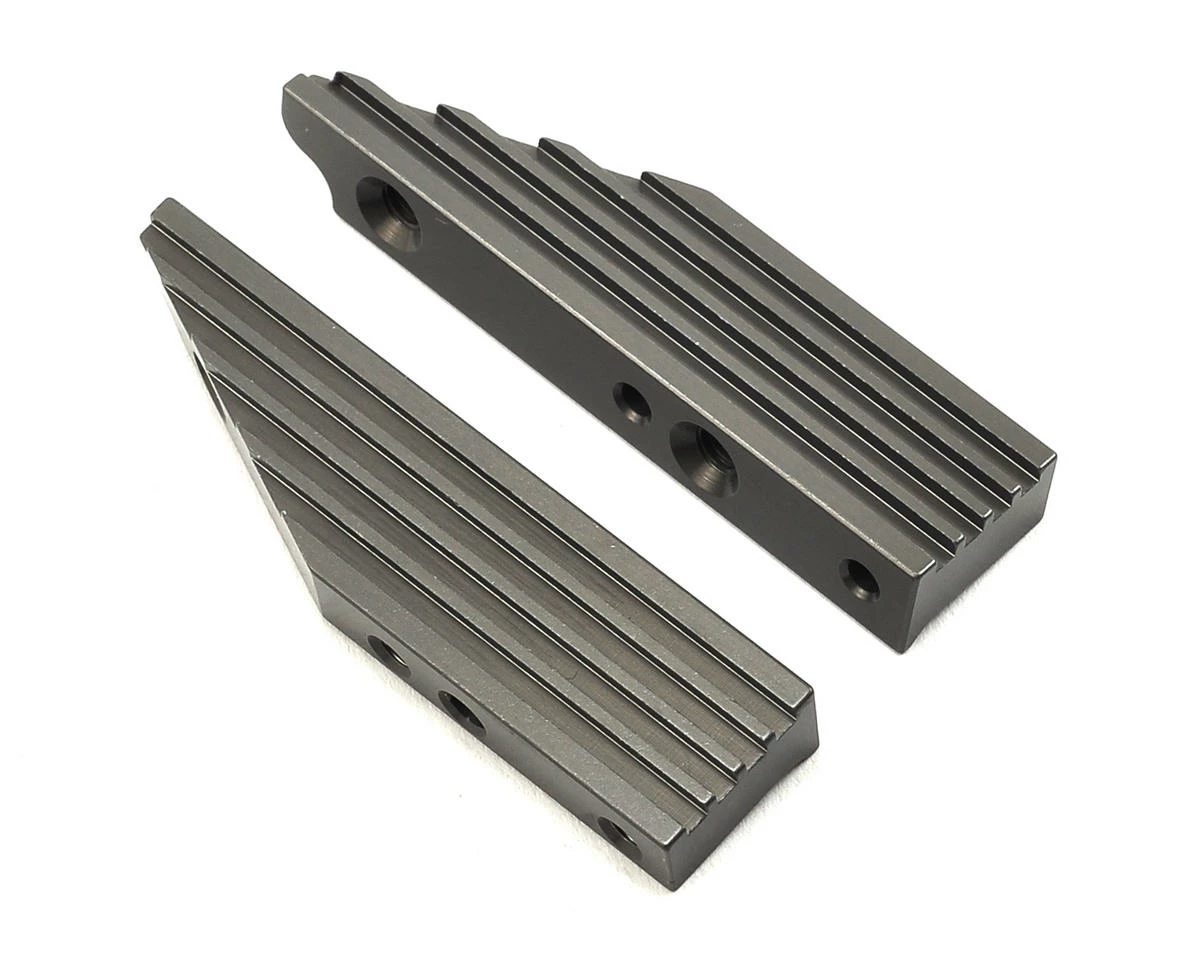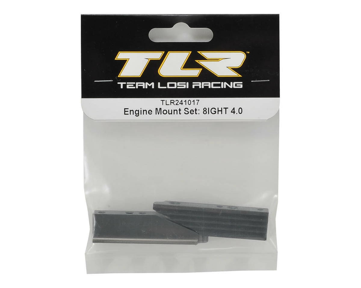 Team Losi Racing 8IGHT 4.0 Engine Mount Set. This is the standard replacement engine mount and has been designed with a larger footprint that substantially reduces chassis flex and fatigue underneath the engine when racing on high-grip tracks.