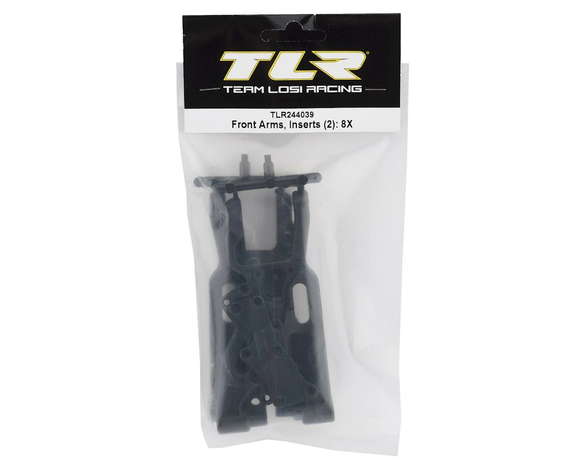 This is a replacement Team Losi Racing 8IGHT-X Front Arm Set with included arm inserts. Mounting hardware not included.Â