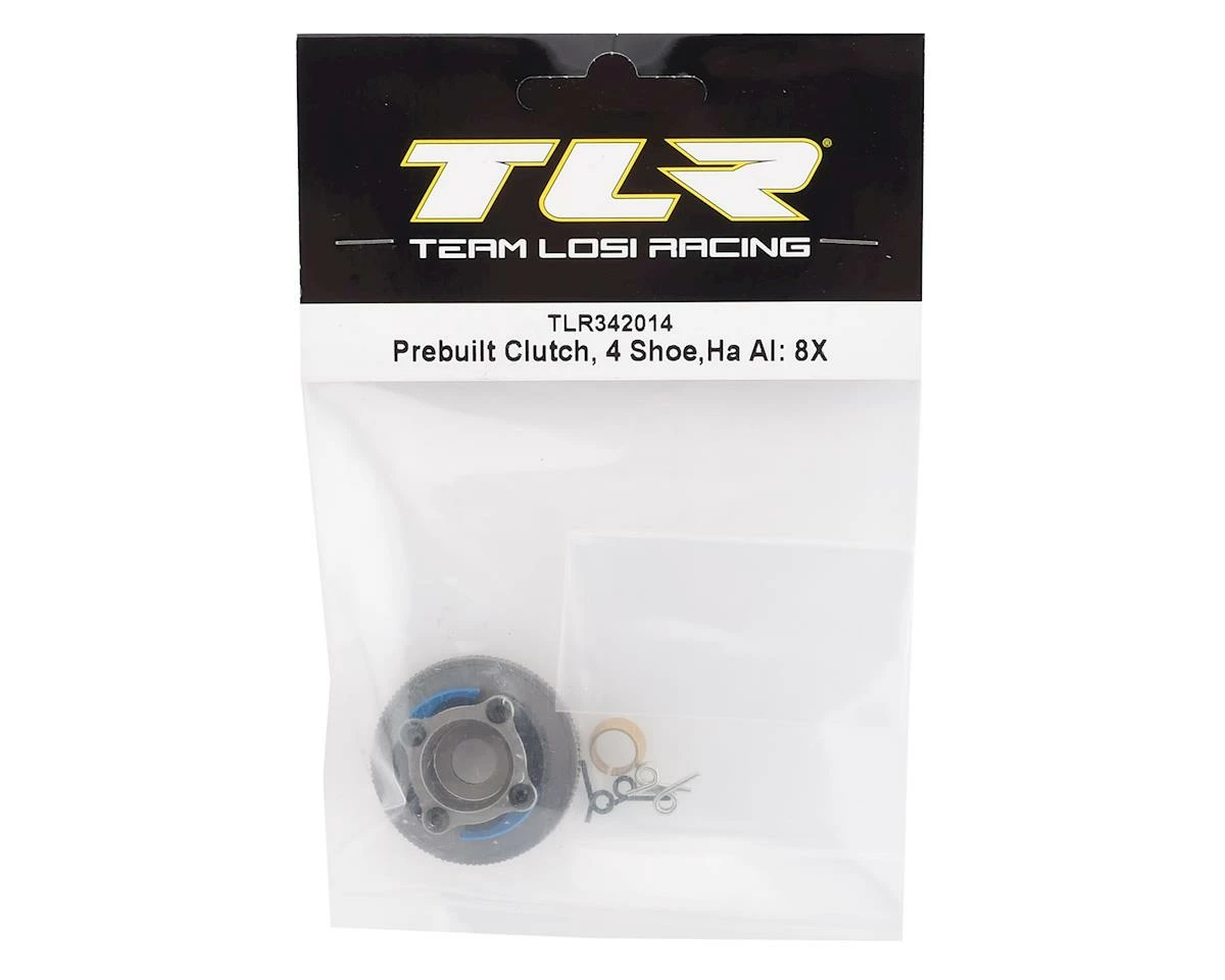 This is an optional Team Losi Racing 8IGHT-X Prebuilt Aluminum 4-Shoe Clutch. This clutch includes the flywheel with the clutch shoes, springs and clutch pins installed; a collet and extra springs are also included.