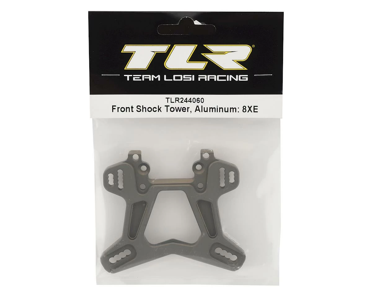 This is a Team Losi Racing Aluminum Front Shock Tower, intended for use with the Team Losi Racing 8IGHT-XE Race 1/8 Electric Buggy as a replacement front shock tower.