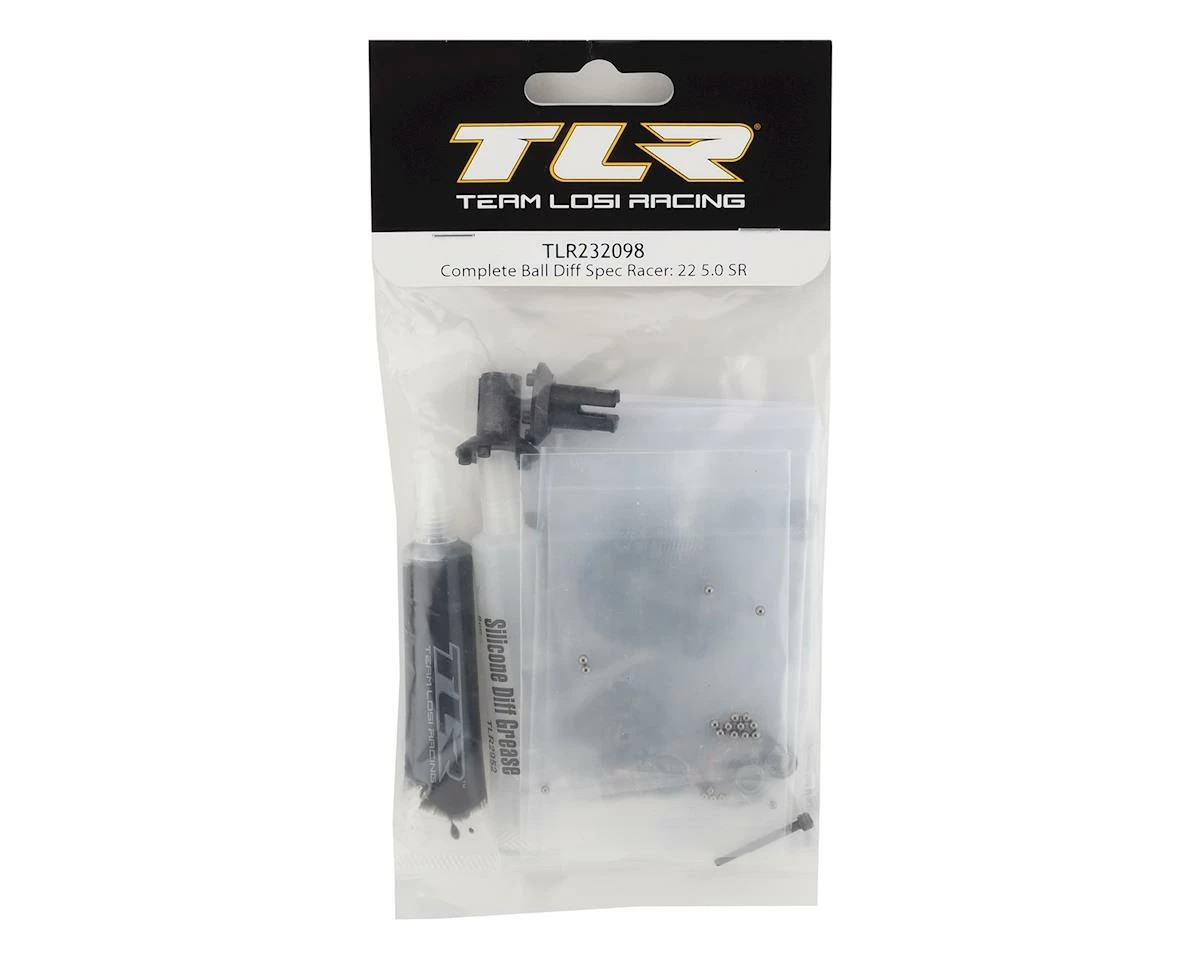 This is the Team Losi Racing Complete Ball Diff Kit, intended for use with the TLR 22 5.0 SR Spec Racer. This differential kit includes all the necessary parts to build a full diff; in the event you’re looking for a spare to have on hand in a moments notice, or ensuring you have every single spare part needed to service the diff.Â