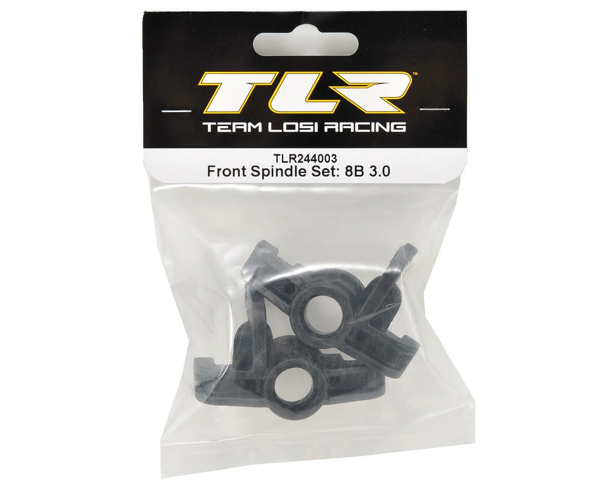 This is a replacement Team Losi Racing Front Spindle Set, and is intended for use with the Losi 8IGHT 3.0 1/8 buggy. Package includes two front spindles.
