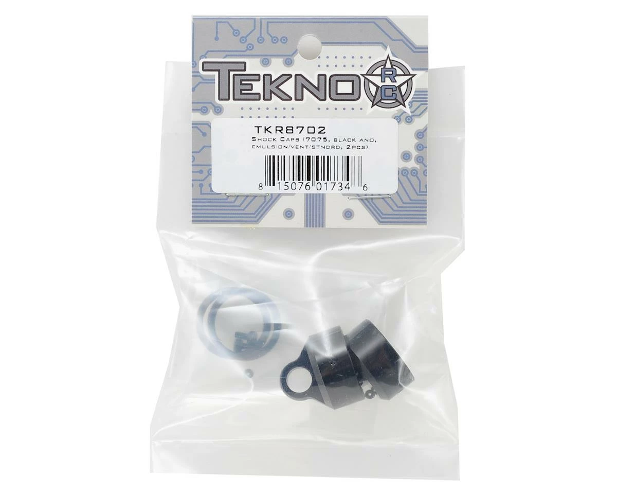 CNC machined from 7075 aluminum and black anodized, Tekno RC’s TKR8702 shock caps provide the utmost durability and flexibility when choosing your shock damping package. The included left and right side shock caps allow the cap screw to face toward the inside of the vehicle and the bleeder hole to face the rear, away from incoming dirt and dust. Replacement o-rings are available (TKR8725).