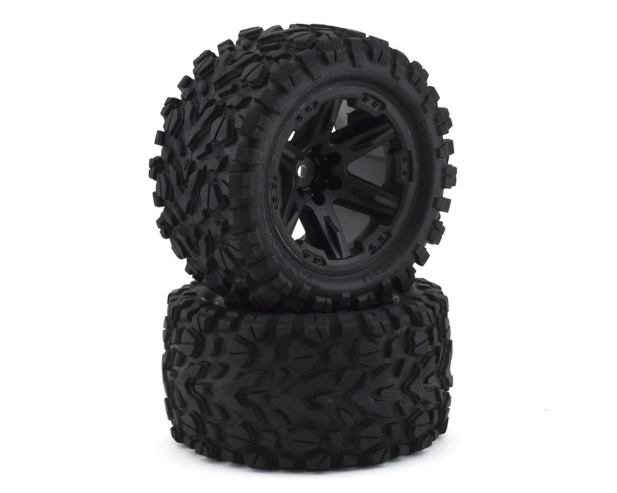 Traxxas Talon EXT 2.8″ Pre-Mounted Tires with RXT Wheels. These are the stock replacement wheel/tire setup that is included with the Traxxas Rustler 4×4. Package includes two TSM rated premounts.Â
