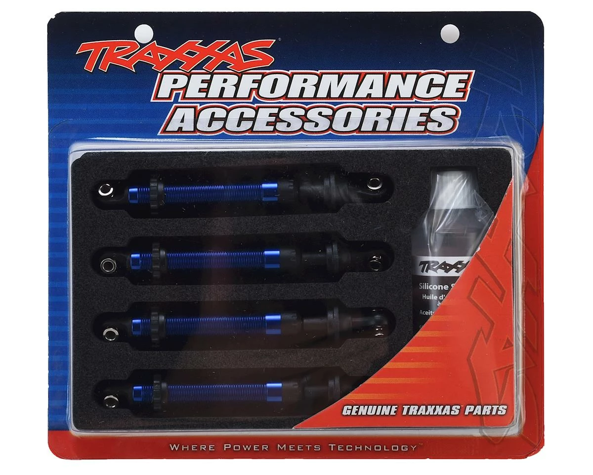 Traxxas TRX-4 GTS Aluminum Long Arm Shocks. These shocks are compatible with TRX-4 trucks equipped with the optional Traxxas Long Arm kit. Package includes four pre-assembled shocks and one bottle of unspecified weight shock oil. Shock springs not included.Â