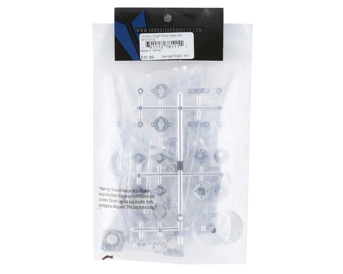 The Vanquish Products Origin Body Chrome detail set is an optional accessory for the Vanquish Origin and Origin Halfcab bodies. Made from injection molded nylon with chrome plating, this kit will add a touch of flash to the Origin body.