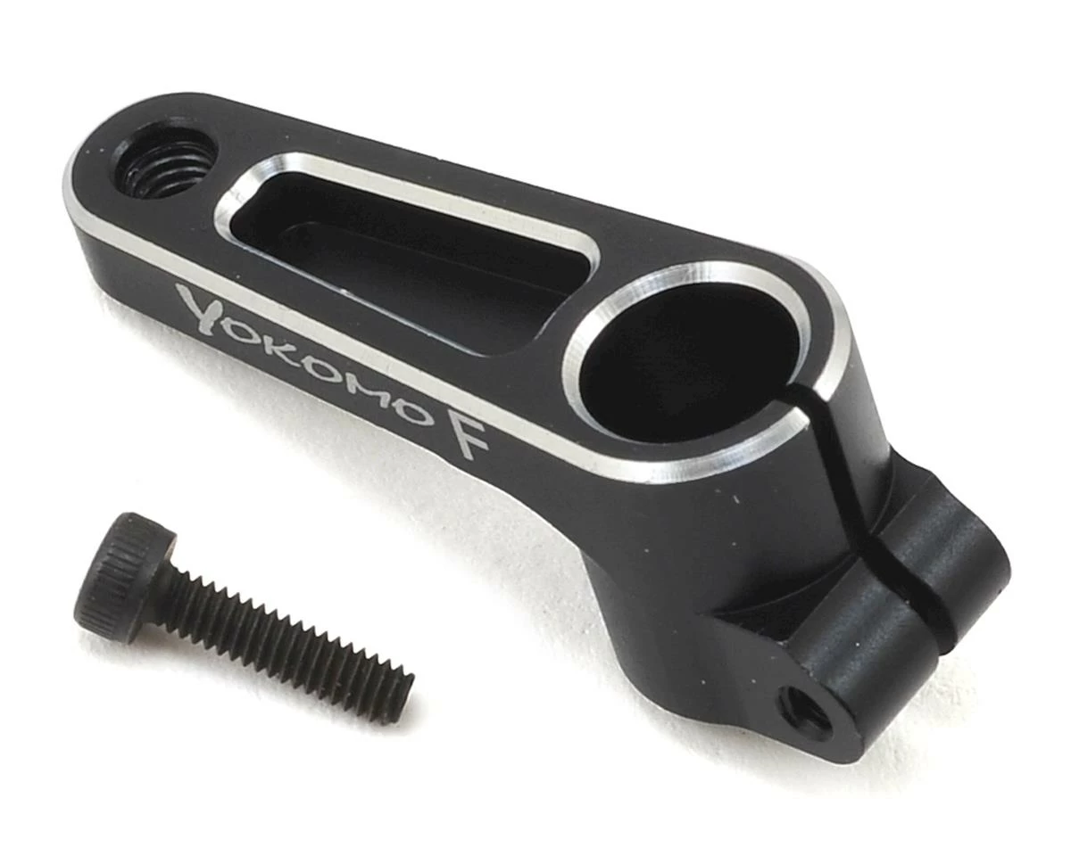 The Yokomo BD8 Aluminum Clamping Servo Horn is an aluminum servo horn that allows more direct operation of the servo. The distance from the servo output shaft to the center of the pillow ball attachment hole at the tip is 20mm, and matches the servo shaft spline (25T) made by Futaba, ProTek, Savox and others. It is the best size for touring cars.