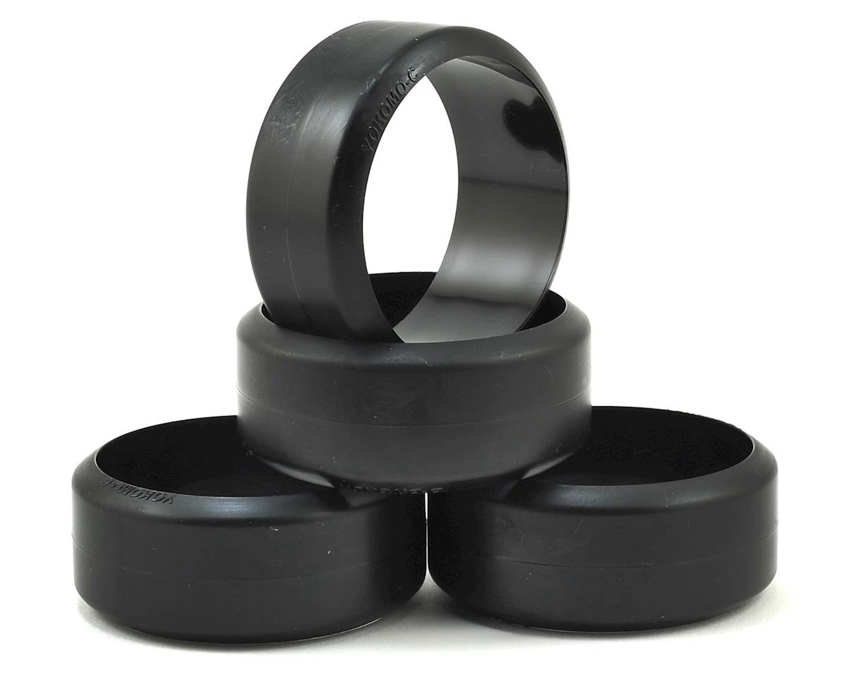 This is a pack of four Yokomo DRA Competition Drift Tires for use on Carpet surfaces. This is a solid type competition resin drift tire DRC. It is the optimum compound for carpet surface and features an updated design of tire thickness, tread shape and sidewall shape.
